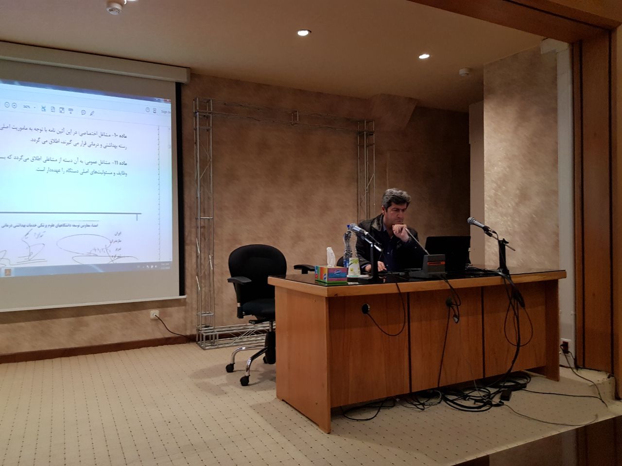 نظیر روز گذشته ابتدا جناب آقای دکتر مولانا مدیر محترم توسعه سازمان و تحول اداری ضمن خوشامدگویی حضور همکاران محترم، در خصوص اهمیت و ضرورت آشنایی بیشتر با آئین نامه جدید سخنانی بیان فرمودند. سپس جناب آقای سید محمد سید حسینی اصل رئیس محترم گروه مهندسی مشاغل با همکاری جناب آقای آرمان کارشناس مسئول محترم مهندسی سیستم ها و روش ها ارائه روز دوم را بر عهده گرفتند.