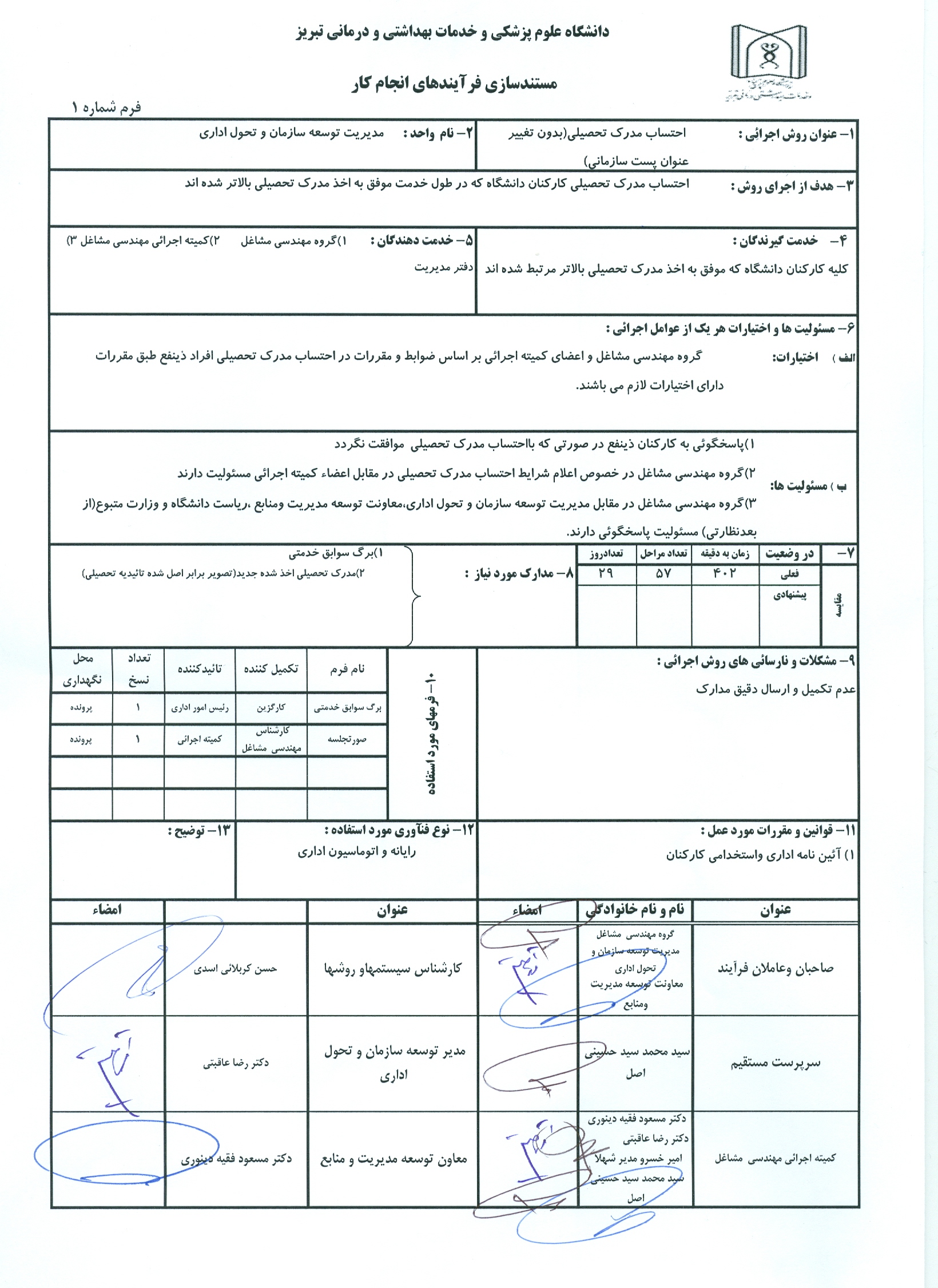 - مستندسازی - نمودار گردش کار - نمودار جریان کار -فرم تجزیه و تحلیل شغل - جدول مقایسه وضعیت فعلی و پیشنهادی