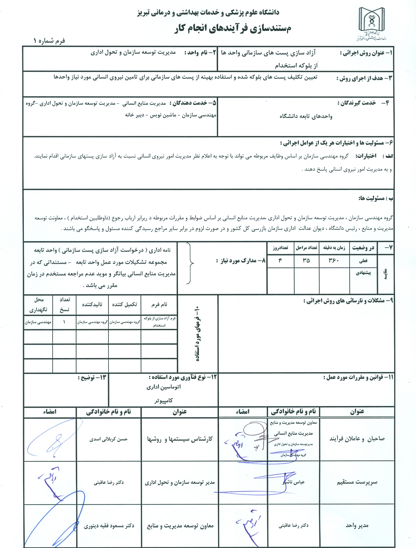 -مستندسازی فرایند انجام کار -نمودار گردش کار -نمودار جریان کار -فرم تجزیه و تحلیل اطلاعات -جدول مقایسه وضعیت فعلی و پیشنهادی